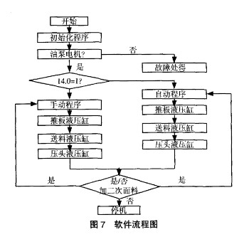 水泥制磚機(jī)控制系統(tǒng)軟件是根據(jù)對(duì)水泥磚機(jī)系統(tǒng)組成及控制原理分析,制磚機(jī)控制系統(tǒng)軟件由下面各程序模塊組成,其體如下,其流程如圖