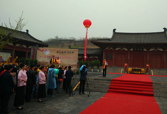 4月5日清明節當天上午9時許,在清明時節的紛紛細雨之中,杜甫國際詩歌節——第三屆清明節杜甫故里祭拜“詩圣”大典在鞏義境內杜甫故里拉開帷幕。來自海內外的近百位詩人、學者等各方來賓云集“詩圣”故園在此一起祭拜“詩圣”。本屆詩歌節邀請了近百位海內外知名詩人參加,其中有臺灣詩人鄭愁予;大陸詩人舒婷、王家新、耿占春以及韓國詩人黃東奎等。