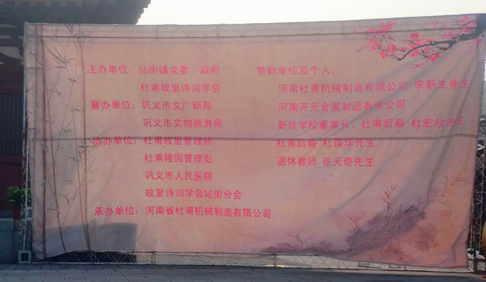 杜甫機械幾經風雨考驗,在小有規模的時候,發起并在站街鎮黨委、政府的支持和領導下,和杜甫故里詩詞學會、杜甫故里紀念館聯合舉辦了兩屆祭拜詩圣杜甫大典。今年市委、政府合并舉辦升格為:杜甫國際詩歌節。