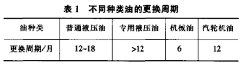 除工作環會對液壓油成污染外液壓泵、液壓等正常磨后所產生的金屬位、膠密封件磨產生的像膠顆粒油器的芯和高壓膠軟管勞磨所產生的脫落物等也會造成液壓油的污染。所以隔一段時間對系統的油進行抽樣查,分析其污染程度是否還在該系統允許的使用范圍內。如不合要求,必須立即更換,不應在油到使系統出現故障時才更換。更換液壓油的期限,因油品種、工作環境、運行工況不同有很大不同。一般來說在連續運轉、高、高濕、灰塵多的地方,需要縮短換油的周期。表1給出不同種類油的更換周期。
